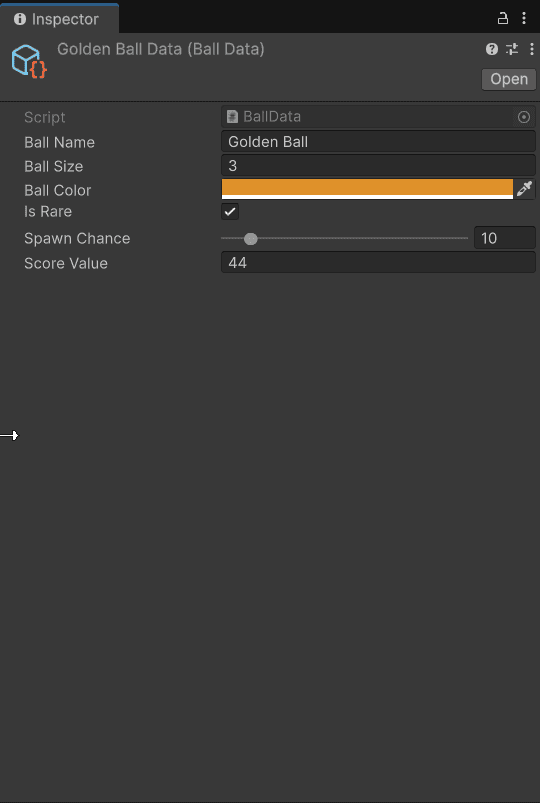 Data-Driven Design (ScriptableObjects): Completely decoupled game logic from data. Ball types, colors, score values, spawn chances, and power-ups are all defined via ScriptableObjects, allowing for rapid balancing and the addition of new content without touching the codebase.